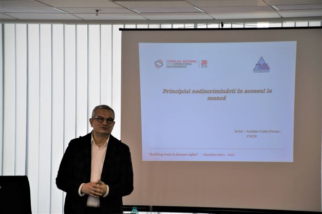 Prima sesiune de informare din acest program a fost susținută de preșdintele CNCD, domnul Csaba Fernec Asztalos, pentru angajații din sediul central al Companiei. Pentru o bună înțelegere a fenomenului, în cadrul prelegerii au fost discutate subiecte privind Principiul nediscriminării în accesul la muncă, fiind prezentate legislația în vigoare și jurisprudența din domeniul combaterii discriminării, dar și spețe concrete legate de această temă.