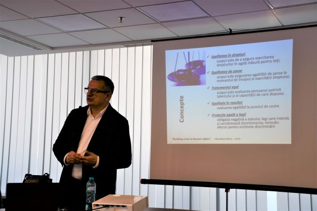 Campania de informare a angajaților CNTEE Transelectrica SA în materie de drepturile omului și a egalității de șanse în vederea combaterii fenomenului de discriminare, în parteneriat cu CNDC, va continua până la sfârșitul acestui an prin susținerea sesiunilor de informare și conștientizare în toate entitățile teritoriale ale Companiei.